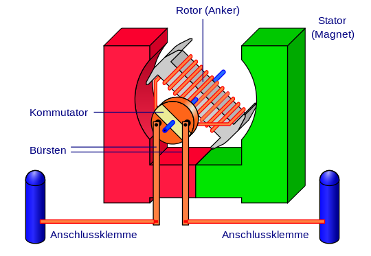 فرشتان من الكربون أو المعدن ثابتتان وتلامسان نصفي الاسطوانة أثناء دورانھم اوتتصلان بقطبي البطاریة.